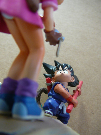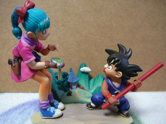 | ブルマとの出会い 「お前妖怪だな!」 「ドラゴンボール知らない?」 |