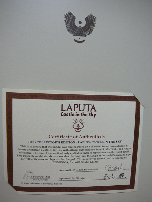 どちらのロボットの蓋の部分に鈴木敏夫と宮崎駿のサイン入りの証明書付き |